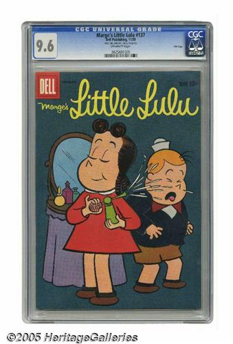 <B>Marge's Little Lulu #137 File Copy (Dell, 1959) CGC NM+ 9.6 Off-white pages.</B></I> Overstreet 2005 NM- 9.2 value = $70. CGC census 3/05: 1 in 9.6, none higher. <I>From the Random House Archives.</B></I>