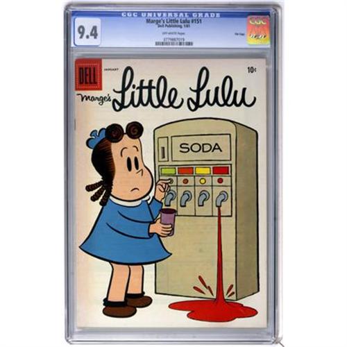 <B>Marge's Little Lulu #151 File Copy (Dell, 1961) CGC NM 9.4 Off-white pages.</B></I> The only copy certified by CGC to date. Overstreet 2007 NM- 9.2 value = $75. CGC census 6/07: 1 in 9.4, none higher. <I>From the Cary and Cheryl Porter Collection.</B></I><BR><BR><b>Shipping:</b> Comics - Slabbed (certified) (<a target="_blank" href="http://www.heritageauctions.com/common/shipping.php">view shipping information</a>)