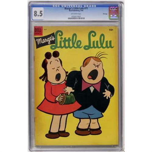 <B>Marge's Little Lulu #71 File Copy (Dell, 1954) CGC VF+ 8.5 Off-white pages.</B></I> Overstreet 2007 VF 8.0 value = $65; VF/NM 9.0 value = $103. CGC census 7/07: 2 in 8.5, none higher.<BR><BR><b>Shipping:</b> Comics - Slabbed (certified) (<a target="_blank" href="http://www.heritageauctions.com/common/shipping.php">view shipping information</a>)
