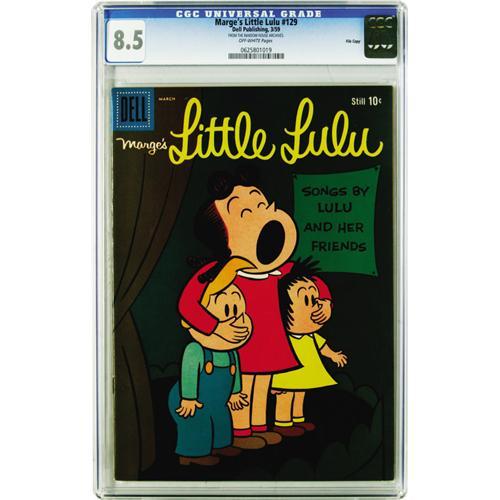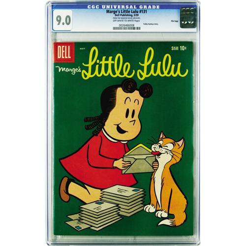 <B>Marge's Little Lulu File Copies CGC Group (Dell, 1958-60).</B></I> All issues are CGC 9.2 and certified with "off-white to white" page quality unless otherwise noted. Included here are #126 (off-white pages; CGC census 3/06: 3 in 9.2, 1 higher), #128 (4 in 9.2, 2 higher), #129 (CGC 8.5 off-white pages; 1 in 8.5, none higher), #131 (CGC 9.0; 3 in 9.0, 3 higher), #135 (2 in 9.2, 2 higher), #138 (off-white pages; 3 in 9.2, none higher), #139 (3 in 9.2, 3 higher), #140 (2 in 9.2, 4 higher), #141 (3 in 9.2, 4 higher), #142 (4 in 9.2, none higher), #143 (4 in 9.2, none higher), #144 (CGC 9.0 off-white pages; 3 in 9.2, 2 higher), and #145 (CGC 9.4; 2 in 9.4, none higher). Overstreet 2005 NM- 9.2 value for group = $940. <I>From the Random House Archives.</B></I>