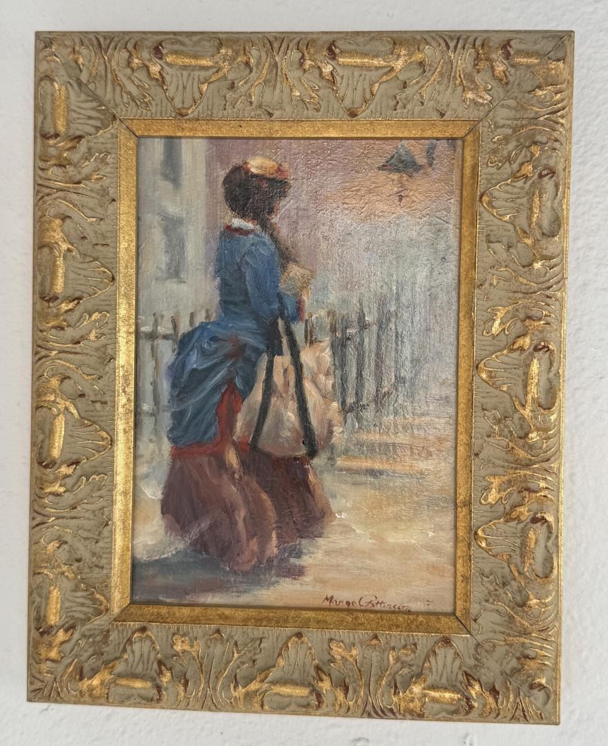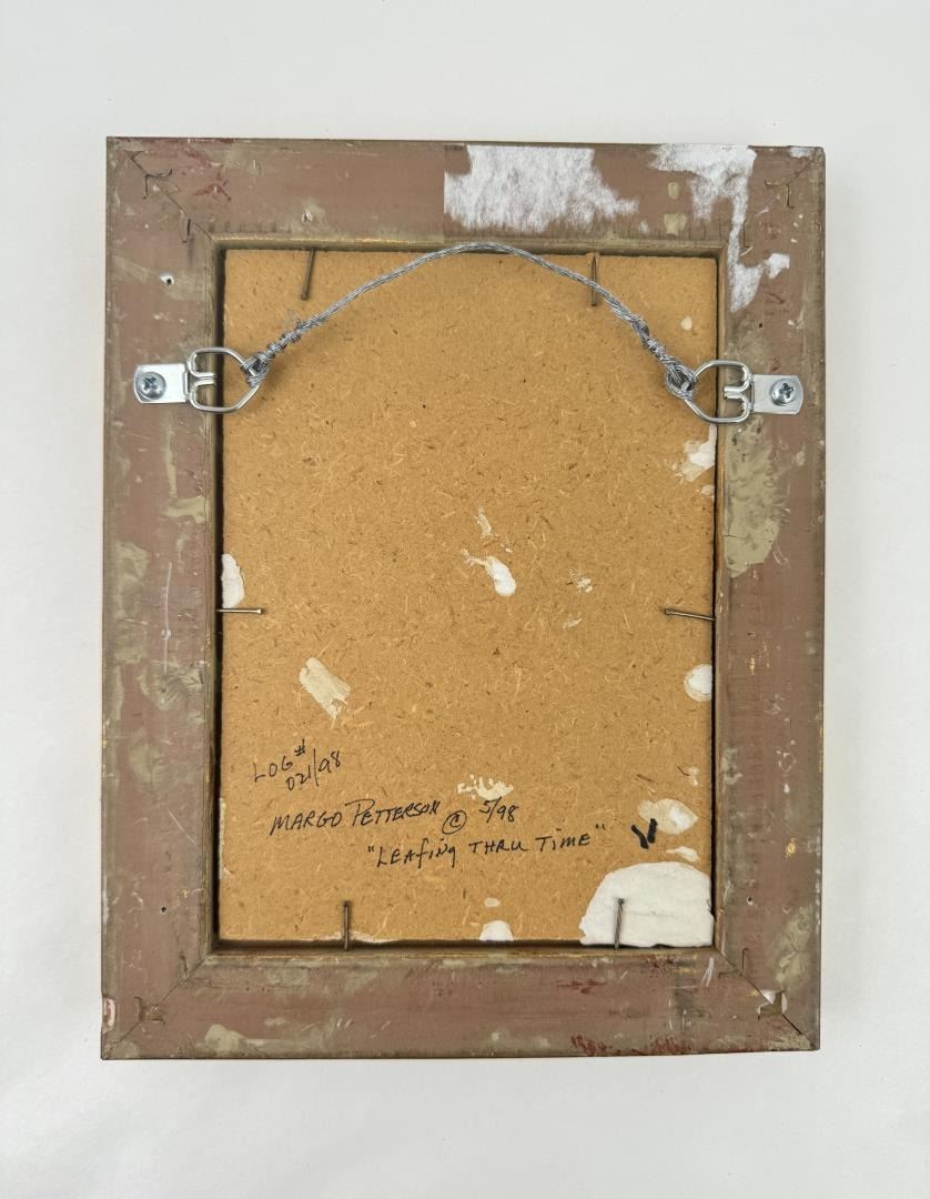 Leafing Thru Time. 9 1/4" by 7 1/4". Primarily known for her impressionistic oils, Margo Petterson´s trademark has always been her Feminine Westseries, depicting the women of the early West. She has also become known in recent years for her equine art, focusing mainly on Draft Horses, the wild mustangs and Indian paints of the western prairie. Her recent paintings can be seen at the Cattlemen´s Western Art Show in Paso Robles, CA; Calgary Stampede in Calgary, Canada; the C.M. Russell Art Auction in Great Falls, Mt.; Treasure State Art Show in Hamilton, Mt.; Draft Horse Classic in Grass Valley, Ca., and the Empire 100 Western Art Show. Petterson can also be found in Who´s Who in American Art and Who´s Who in America. Her work has been published in Art of the American West, Directional Publishing Company and Inspirations Unlimited, to name a few. Membership in professional organizations include Signature Member of the Women Artists of the West (WAOW), Equine Art Guild, Artist Member of the California Art Club, Associate Member of the American Academy of Equine Art, and the Eastern Sierra Professional Artists Group. Petterson has won numerous awards including Best of Show at the Draft Horse Classic, Western States Horse Expo, Snake River Showcase. She was 2003 Poster Artist for the Cowboy Poetry Festival in Big Bear Lake, California. She lives with her husband in the High Sierra´s, in Coleville, CA.
