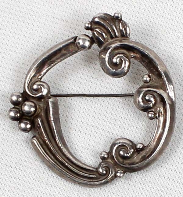 Margot de Taxco Mid-Century Sterling Silver Pin, measures 1.5'' x 1.5'', floral motif, hallmarked and stamped sterling