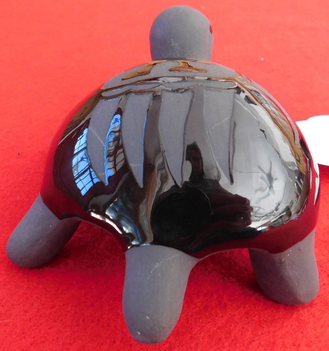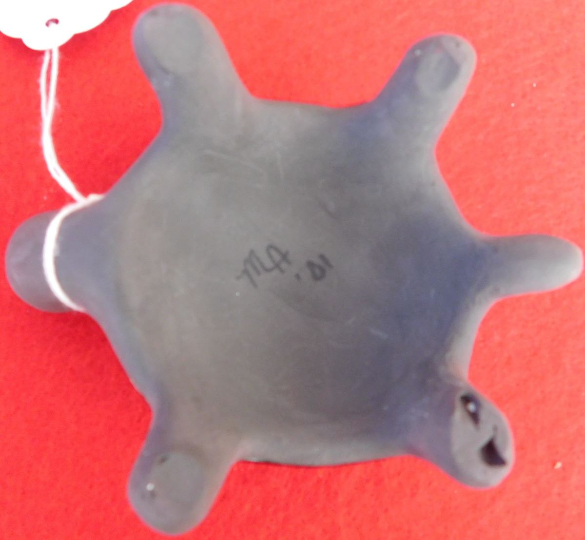 This Maria Adelcia Pottery Turtle is from the 2000's >it is from the San Juan Pueblo and measures 5x3.5 x 2 inches. Great black ware pottery with bear claw design on shell area. Shipping $16.00