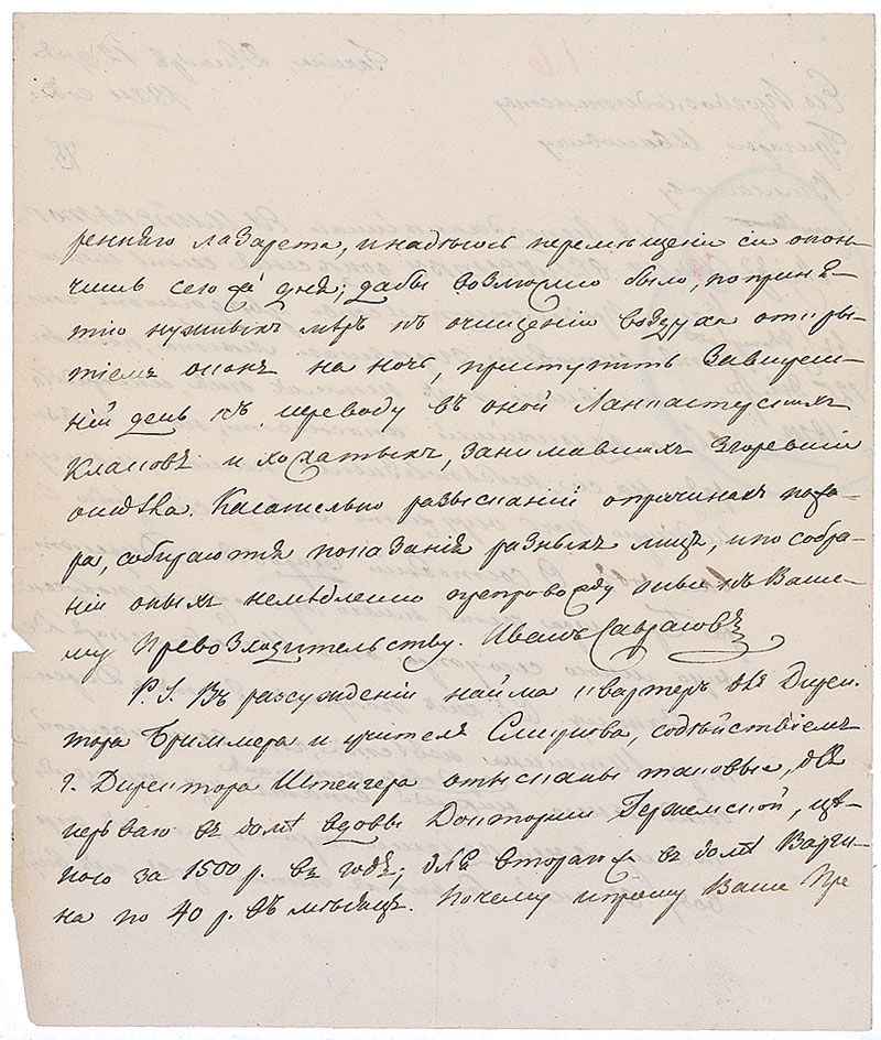 Second wife of Tsar Paul I of Russia and mother of Tsar Alexander I and Tsar Nicholas I of Russia. Handwritten endorsement, in Russian, signed, “Maria,” in the border of a manuscript document, also in Russian, one page, both sides, dated 1824. Endorsement circled in blue pencil, a central vertical fold to document, a couple of small edge chips, and a few other small pencil notations, otherwise fine condition.