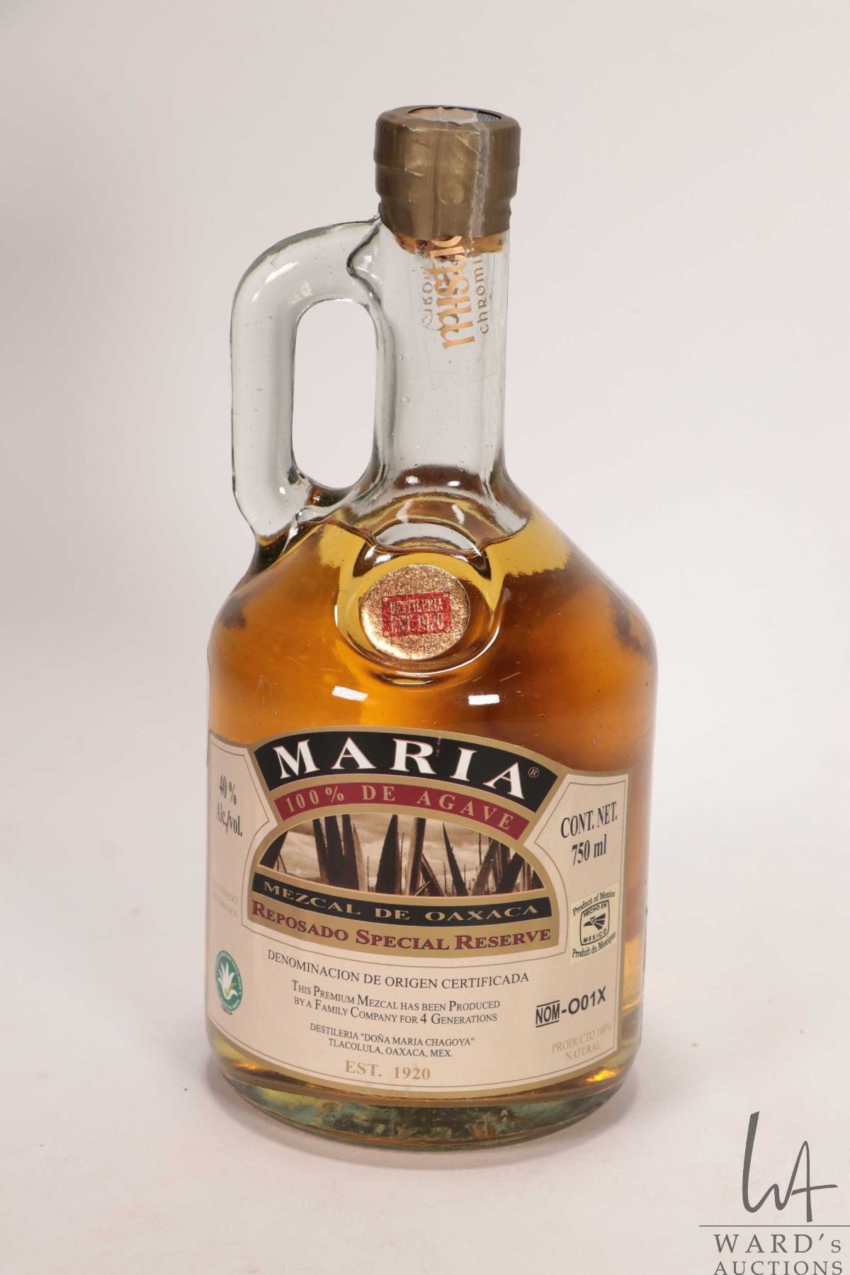 Maria/ Reposado Special Reserve/ Mezcal/ 750ml/ 40% ABV, Lot No. RC-004, Bottle No. 360 Note: Alcohol cannot be insured by any courier in Canada. Local pick up is recommended. Canadian bidders only.