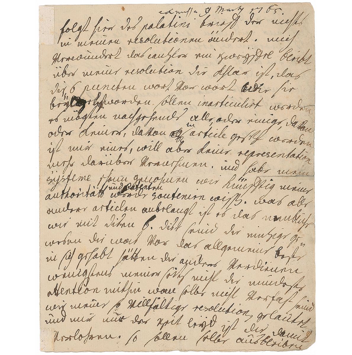 Holy Roman Empress and Queen of Bohemia (1717–1780) who was the mother of Marie Antoinette. ALS in German, unsigned, one page, 6.25 x 7.75, no date. Untranslated letter to an official about preparations for the Hungarian state parliament, mentioning a chancellor [Wenzel Anton, Prince of Kaunitz-Rietberg] who had some qualms about her resolutions. Central vertical and horizontal folds (one partial edge separation repaired with tape) and mounting remnants to corners, otherwise fine condition.
