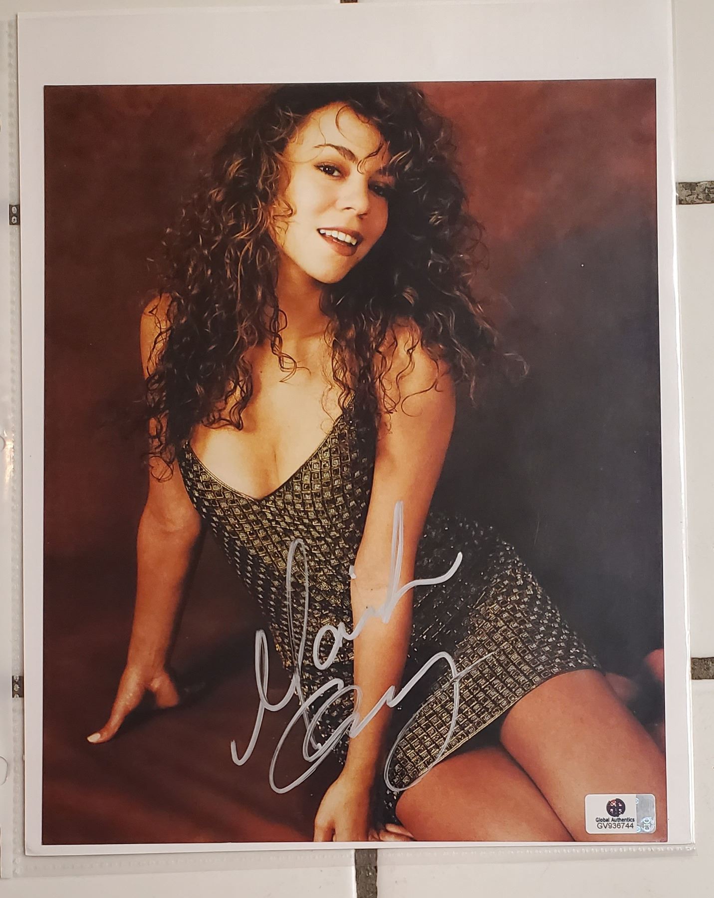 An 8” x 10” photograph signed by Mariah Carey. Global Authentics authenticated the autograph, providing a Certificate of Authentication numbered GV 936744.