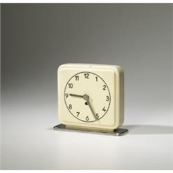 Marianne Brandt clock Ruppelwerke Gotha Germany, 1930s lacquered and nickel-plated steel 6"w x 2"d x 5.5"h Stamped on bottom and on back.