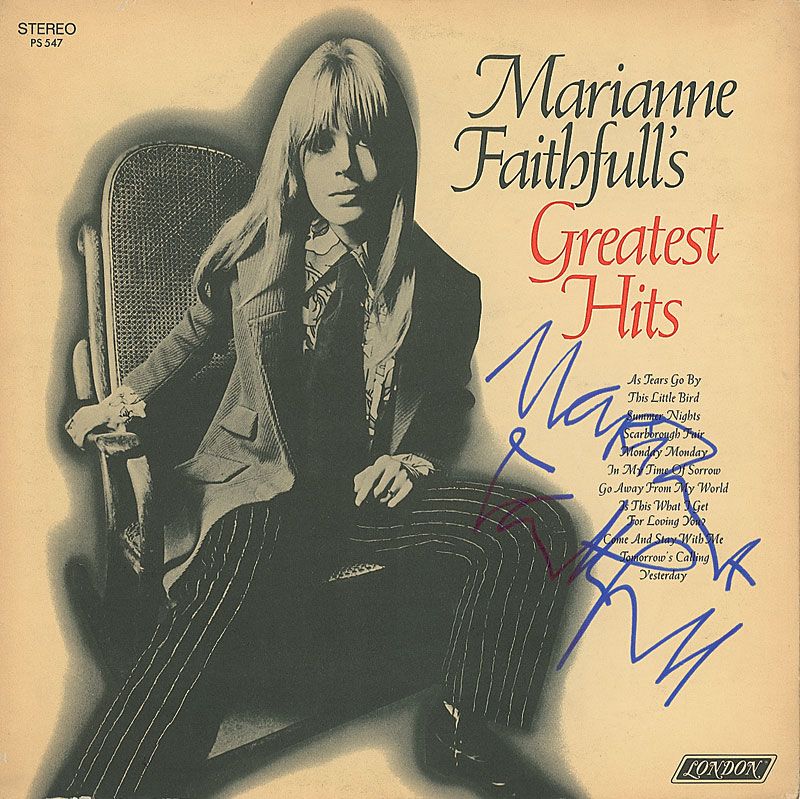 Greatest Hits album signed on the front cover in blue felt tip. In fine condition, with light overall toning and some wear to the edges. The record is not included.