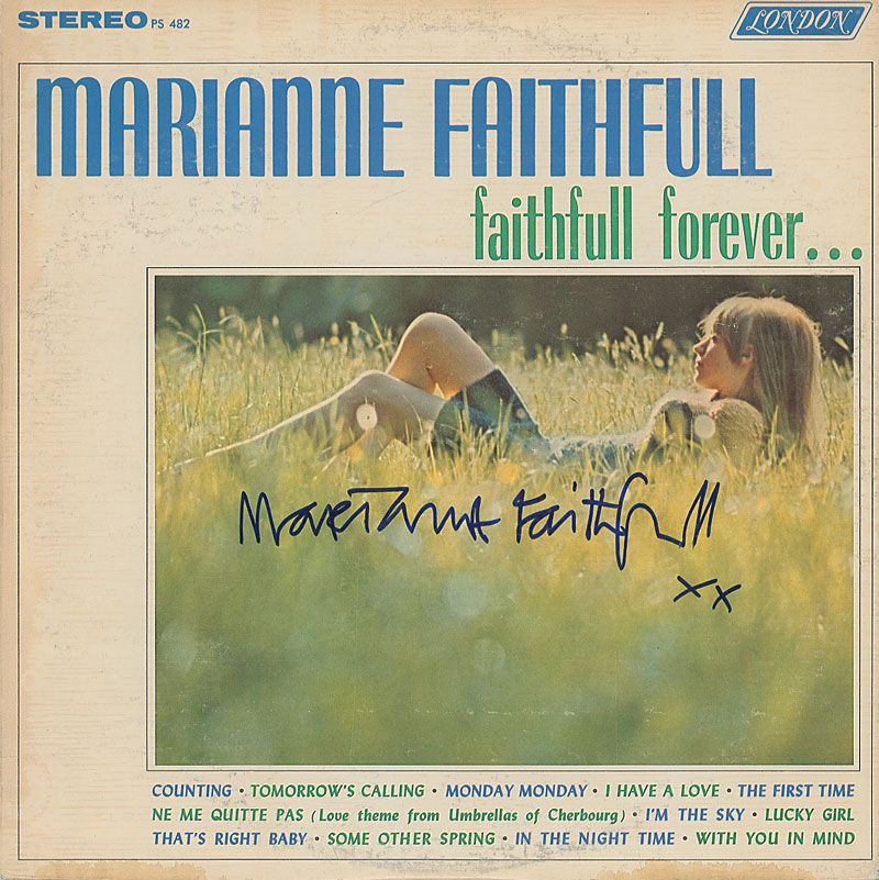 Faithfull Forever album signed on the front cover in blue felt tip, “Marianne Faithfull, xx.” Two small areas of dampstaining to the lower edge and a light ‘ring of wear’ to the front cover, otherwise fine condition. The record is not included.
