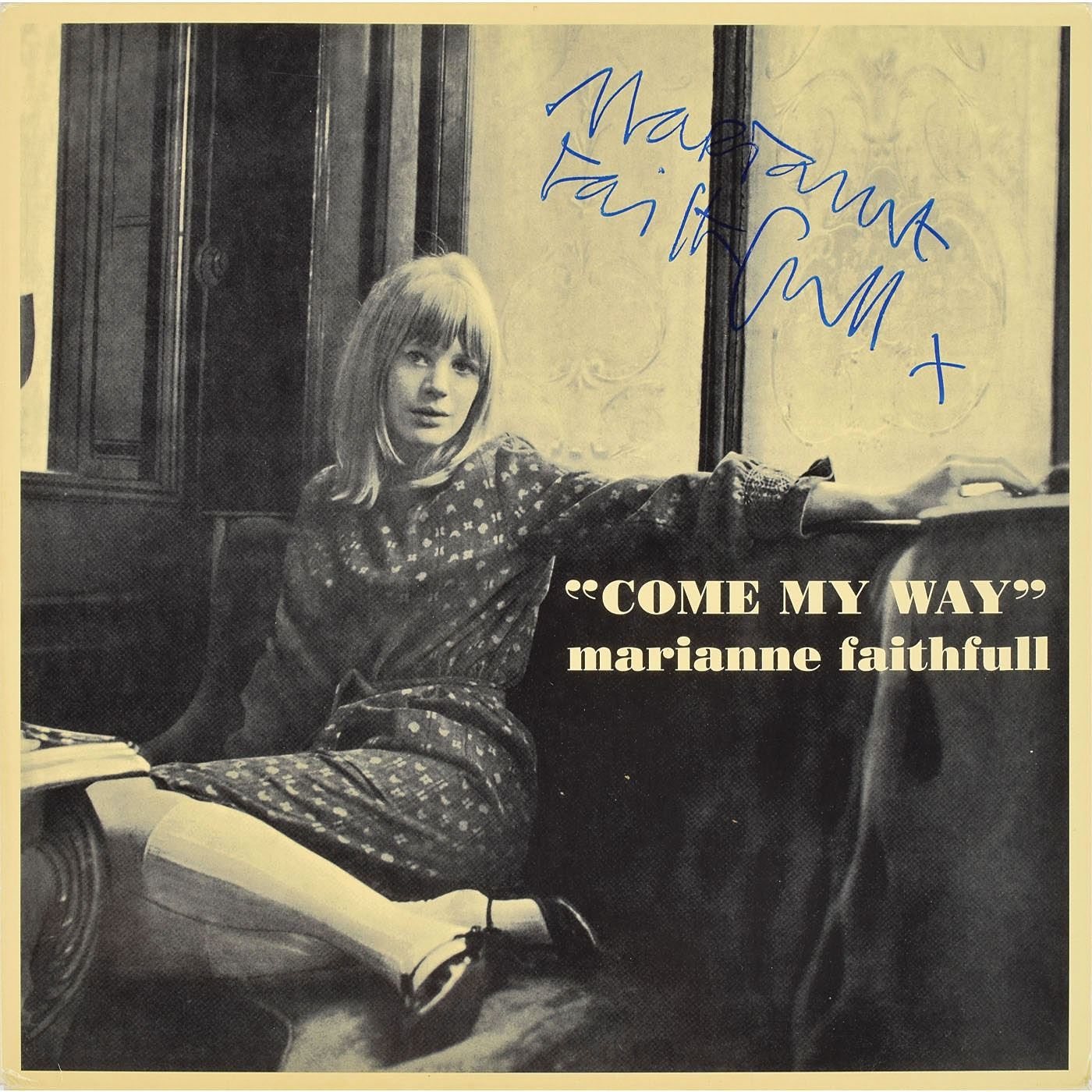 'Come My Way' album signed on the front cover in blue felt tip, "Marianne Faithfull, X." In fine condition. The record is not included.