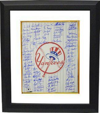 The New York Yankees are one of the AL's eight charter franchises. The club was founded in Baltimore, Maryland in 1901 as the Baltimore Orioles. The team moved to New York City in 1903 and became the New York Highlanders, before taking the "Yankees" as their official name in 1913. Yankees home games were played at Yankee Stadium from 1923 to 1973 and from 1976 to 2008. In 2009, they moved into a new ballpark also called Yankee Stadium after the previous venue closed. One of the most successful franchises in professional sports history, the Yankees have won 18 division titles, 40 AL pennants, and 27 World Series championships, all of which are MLB records. This 16x20 Photo has been hand signed by 70 New York Yankees players. Most famous players are: Charlie Hayes, Bobby Richardson, John Wetteland, Otis Nixon, Moose Skowron, Bob Turley, Luis Arroyo, Larry McCall, B White, Bert Campaneris, Jim Coates, Hector Lopez, Jim Bouton, Mariano Duncan, Lindy McDanieland Jimmy Key. Certificate of Authenticity from Athlon Sports. Custom White Mat and Premium Black Frame as shown.