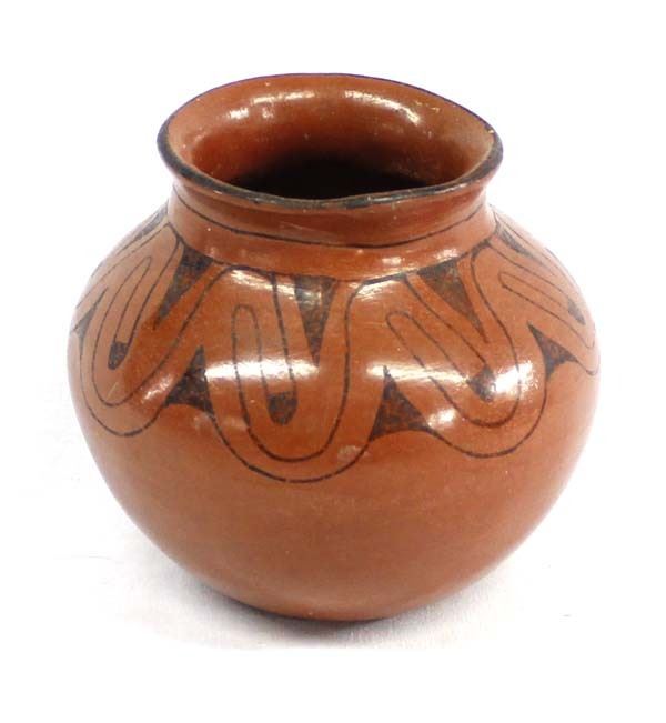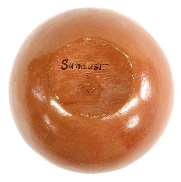 HIstoric Native American Maricopa Pottery Jar by Clorrita Sundust Johnson, measures 5'' x 5'' and is signed on the bottom, FYI: ''Clorrita Sundust Johnson is the same person as Cora Sunn, Original Member of the 1938 Maricopa Pottery Cooperative''