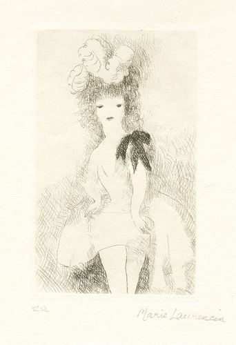 Marie Laurencin "Jeune Fille Au Noeud Noir" Original Etching Artist's Proof - Signed In Pencil And Annotated "Ea" (Epreuve D'artist). Catalogue Reference Marchesseau 93. Size: 125 X 80mm - 4 7/8 X 3 1/8 Inches (Plate) With Full Margins. - This Marie Laurencin Etching Was Executed In 1926 And Published In An Edition Of 160 With Hand Coloring; This Impression On Cream Wove Paper Is An Early State Without Color, And Designated As An Artist's Proof. - Professionally Framed & Matted - Comes With Certificate - -