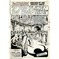 Marie Severin and Herb Trimpe - Original Art for Strange Tales #160, page 1 (Marvel, 1967). Doctor Strange splash pages are rarely offered for sale in any forum, let alone in public auction. Here we have the good Doctor ready to face off with his arch nemesis Mordo and surrounded by his insidious mages. An equivalent piece drawn by Steve Ditko would fetch in the neighborhood of $20,000-$30,000. The art has minor staining and white-out. Also, the mage in the left bottom corner is a stat, but the art does exist underneath. The piece measures 12.5"x 19".  Important notice: We expect to be auctioning lots at the rate of 200-250 per hour. Sometimes eBay Premier live bid software cannot keep up with that pace, so we strongly recommend that you place a realistic proxy bid now as insurance to avoid disappointment. Also please note that all Heritage/CAA lots purchased through eBay Premier carry a 20% Buyer's Premium.
