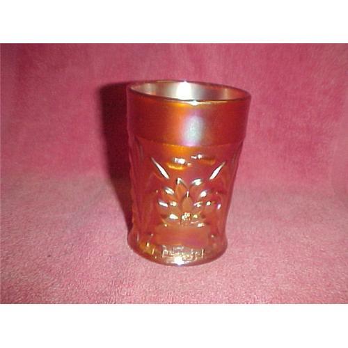 Marigold Carnival Waterlily and Cattails Tumbler. 3-7/8" tall. Good condition with no damage. I think this is Fenton but i'm not for sure...