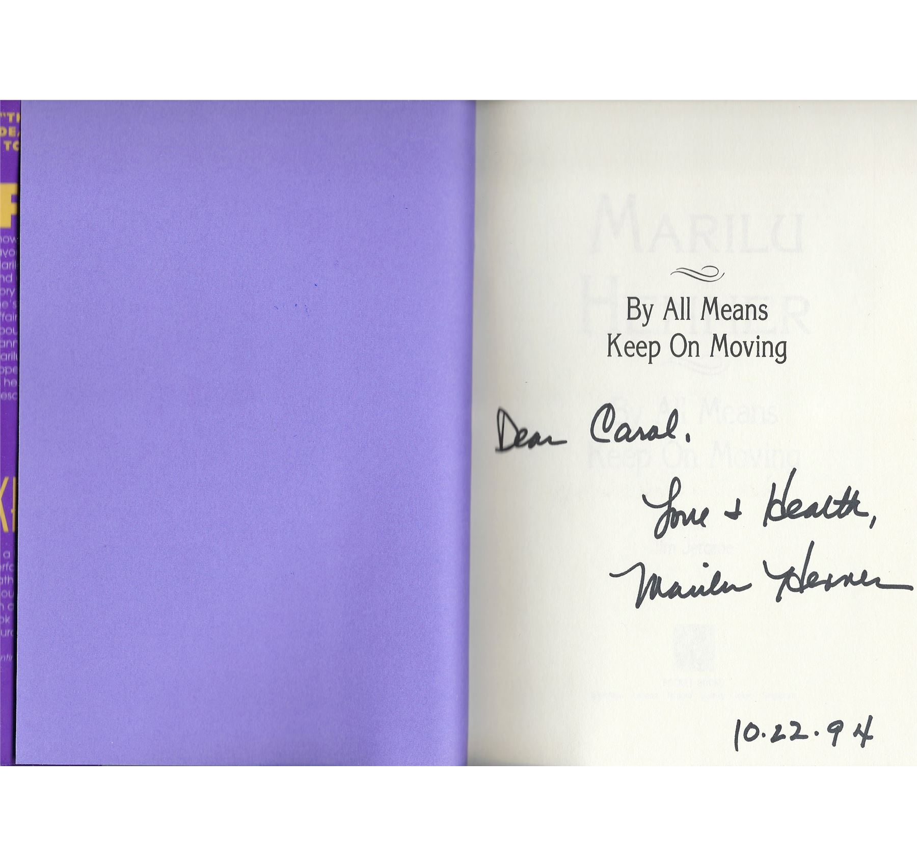 By All Means Keep on Moving signed book autographed by Marilu Henner