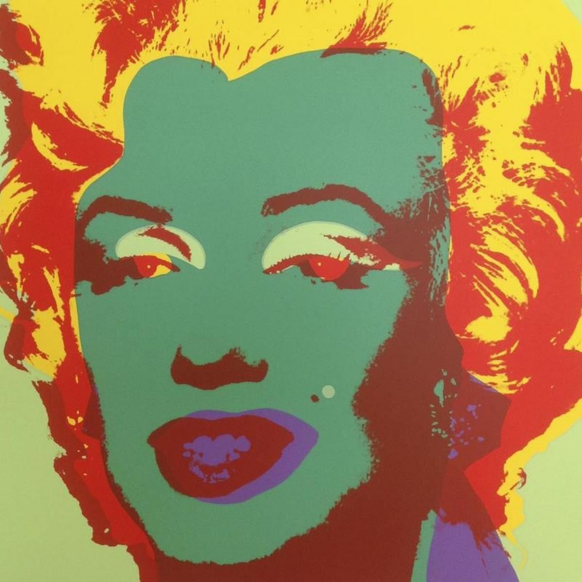 "Marilyn 11.25" is a silk screen print on paper (open edition) from Sunday B Morning featuring the works of Andy Warhol. The piece is stamped in blue on the back with "Published by Sunday B. Morning" and "fill in your own signature" and is accompanied by a certificate of authenticity. Measures approximately 36" x 36".