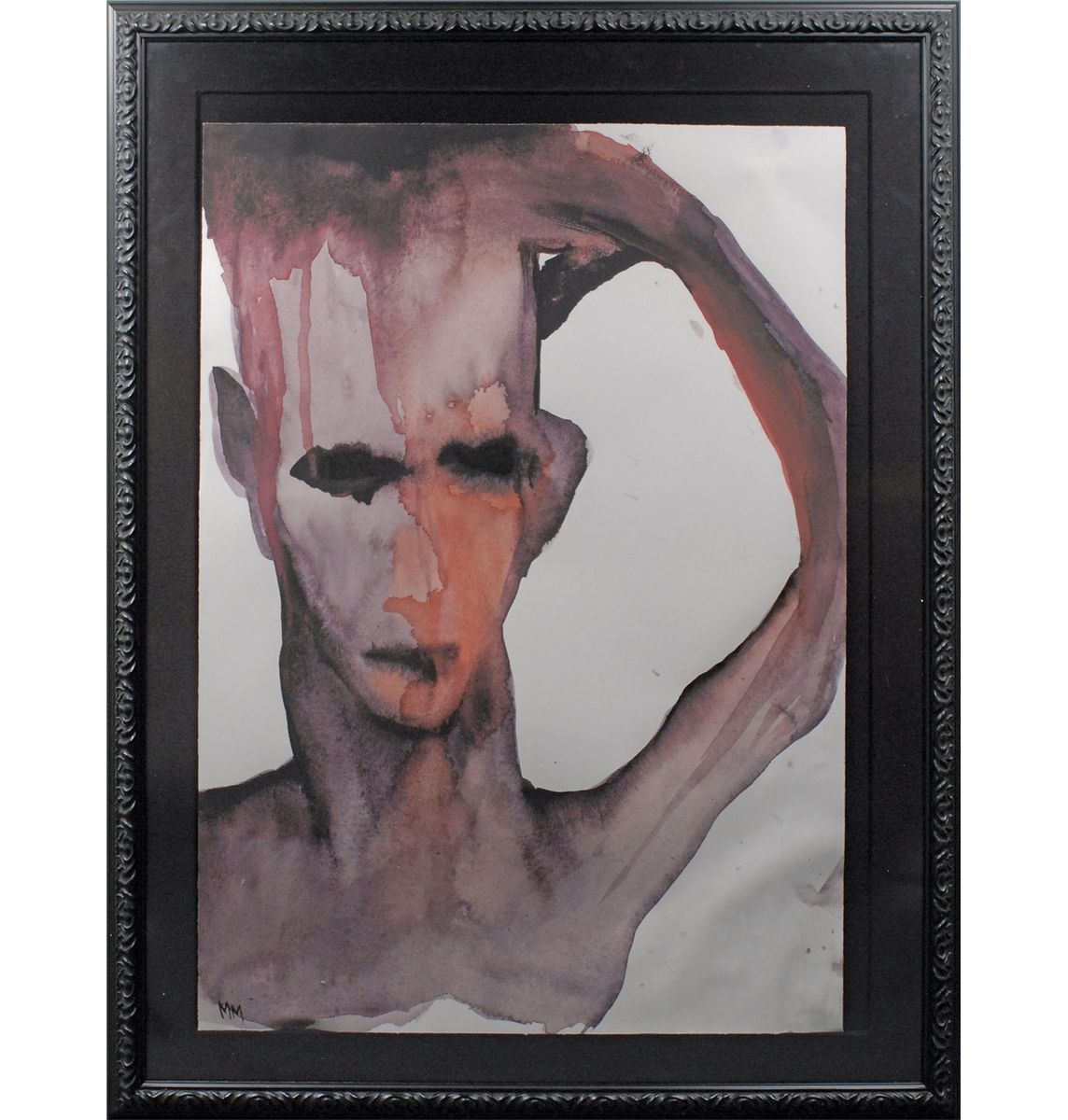 Incredibly desirable original self-portrait, watercolor on heavy canvas paper, 33.5 x 47.5, signed in the lower left corner, “MM.” Matted and framed to an overall size of 45.25 x 55. In fine condition. Accompanied by an ALS from Manson, signed “MM,” to “Mr. G,” which reads, “Here’s the teaser. I included an extra if you think Richard L. at Caa should see it. Make it rare and cherished. I want all of Hollywood to be frowning. Also a score-reel—copy if needed. A disc of art (not the layout) and a little retard-made book of prints. You can pass it around. You got the book of quotes. I have the other half of the script. The other disc is just for you.” Also included is the hardbound book of prints mentioned in the letter, featuring a full-page image of the painted portrait, and other impressive examples of Manson’s watercolor works.” Becoming interested in watercolors in the late 1990s, Manson originally sold his art to drug dealers. His first show, titled ‘The Golden Age of Grotesque’ took place in 2002, and was quite successful, even though his work was panned by critics, several of his paintings sold quickly. This particular self-portrait, done in 1998 as a part of his Gray Series, was used on the cover for his ‘Dope Show’ single, which was nominated for a Grammy award in 1999. Manson's artwork has been featured in galleries and special exhibits around the world and has become increasingly popular and highly desirable by contemporary art collectors. Provenance: Gerry Harrington.