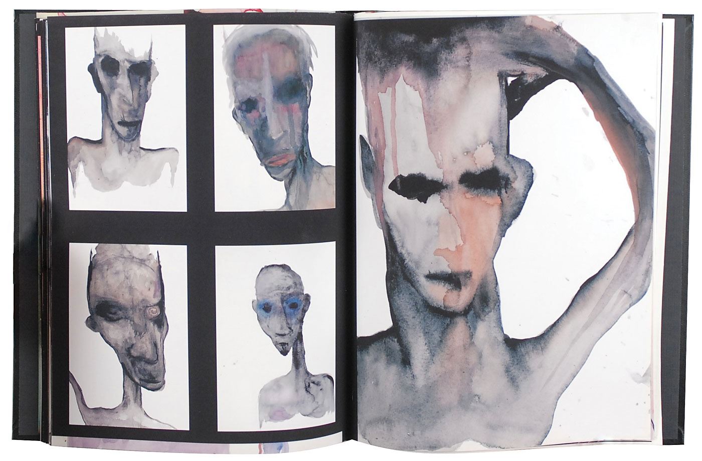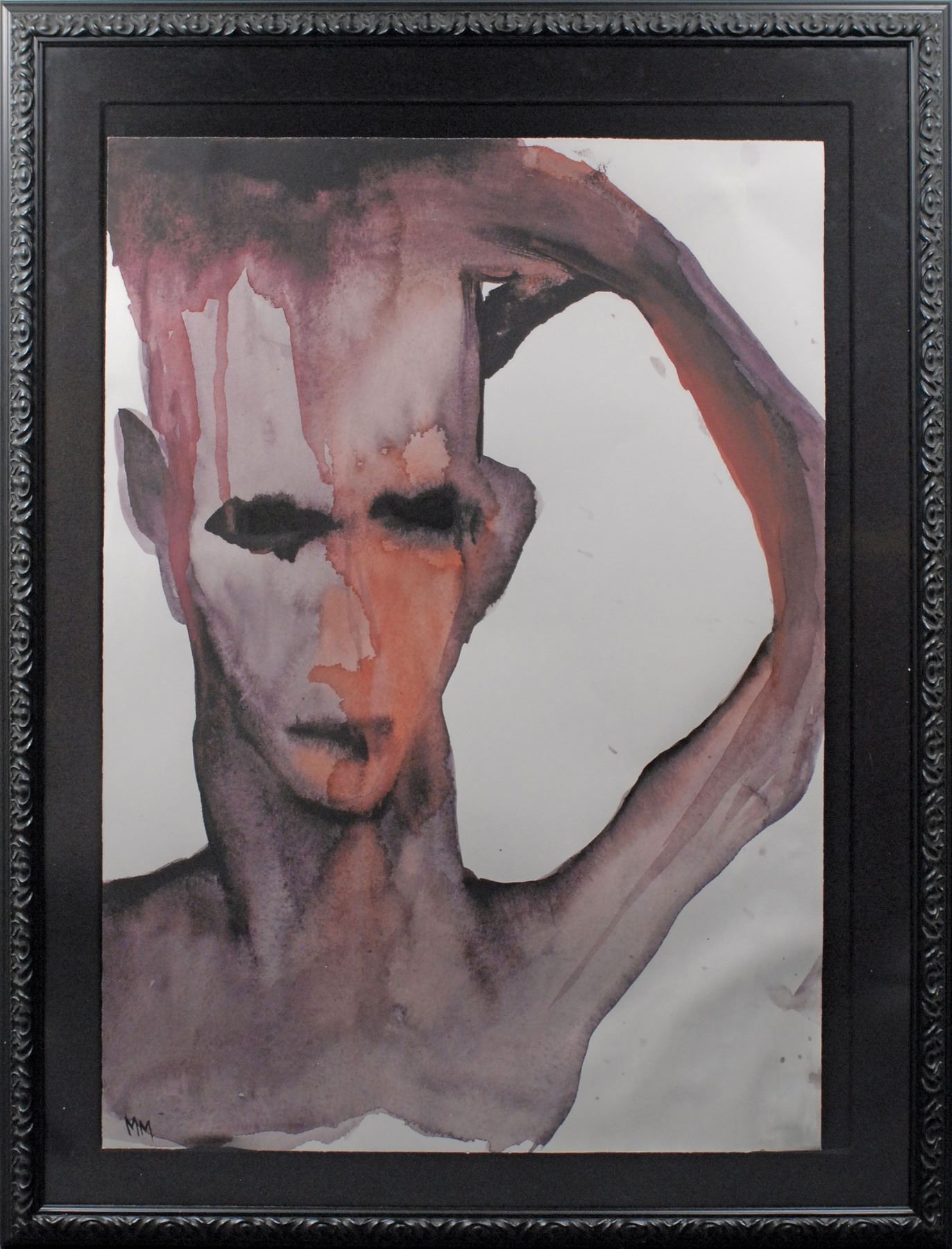 Manson began taking an interest in watercolors in the late 1990s, and had his first solo exhibition, 'The Golden Age of Grotesque,' in 2002. This particular self-portrait, done in 1998 as a part of his Gray Series, was used on the cover for his 'Dope Show' single, which was nominated for a Grammy award in 1999. Manson's artwork has been featured in galleries and special exhibits around the world, and has become increasingly sought-after by contemporary art collectors. Provenance: Gerry Harrington. Oversized.