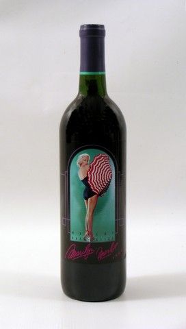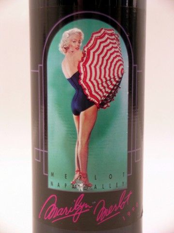 Back in the early 1980's a group of winemakers from Napa Valley began making an amazing Merlot. One evening after drinking a bit of their own product they came up with the idea of calling their brew "Marilyn Merlot", since the unique taste of this wine reminded them of the sensuality and effervescence of the legend. A few years later they made a deal with the Monroe Estate to actually begin bottling "Marilyn Merlot" with images of the super-star on the bottle. These bottles became instant collectables. The merlot's from 1986-1992 are considered the most collectable and valuable. However, they still make the wine to this day. This is a Marilyn Merlot Wine bottle vintage 1990 depicting Monroe in her famous pose in her role as Pola Debevoise in "How to Marry a Millionaire" (1953). (Bottle is 12" high).