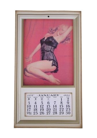 Marilyn Monroe 1954 Lure Of Lace Calendar - In the early 1950's Marilyn Monroe became the most famous and popular "pin-up" (as well as glamourous sex symbol actress) in history. Many of her poses were made into calendars that graced the offices, garages, bedrooms and dorm rooms of America. This is an original 1954 Marilyn Monroe "LURE OF LACE" Pinup Calendar.