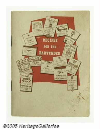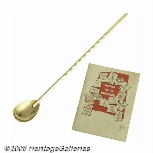 <B>Marilyn Monroe Cocktail Mixing Spoon With Booklet.</B></I> A 10" metal mixing spoon from a set of bar utensils owned by Monroe, along with the bar booklet "Recipes for the Bartender." The spoon is in excellent condition; the booklet shows some moderate staining and wear, but is in otherwise fine condition.