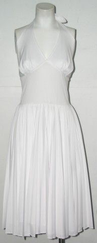 From Frankie Stein's New York fashion studio comes a white custom made Marilyn Monroe style dress. Ms. Stein's work has been featured on stage, television, film & print, and she successfully owns and operates "Frankie Steinz" costume shop in New York. As a freelance costume designer, she later moved her business to New York City where her many clients include ABC, Sony, Disney and HBO, and celebrities Robert De Niro, Billy Joel and Dolly Parton, to name a few. Her work has been featured in The New York Times, Time Out magazine and People Online, and has been seen on The David Letterman Show, The View, Saturday Night Live, The Rosie O'Donnell Show, and Everybody Loves Raymond, and she is credited on the major Academy Award winning film 'Eternal Sunshine of the Spotless Mind.'