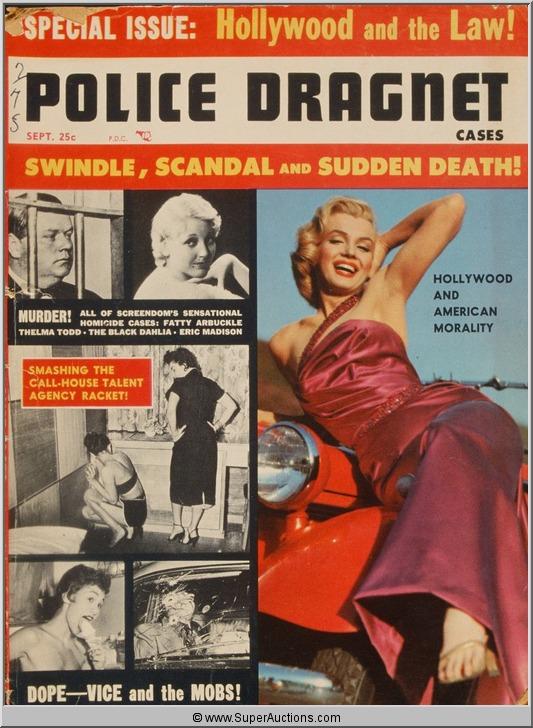 Color Transparency Slide of Marilyn Monroe who was featured as the Cover Girl on the cover of Police Dragnet Magazine. It is a transparency from a picture taken of the actual publication.