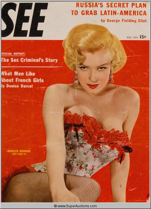 Color Transparency Slide of Marilyn Monroe who was featured as the Cover Girl on the cover of See Magazine. It is a transparency from a picture taken of the actual publication.