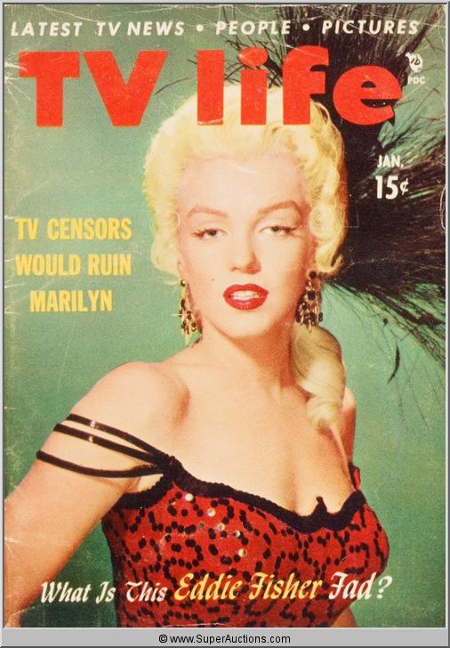 Color Transparency Slide of Marilyn Monroe who was featured as the Cover Girl on the cover of TV Life Magazine. It is a transparency from a picture taken of the actual publication.