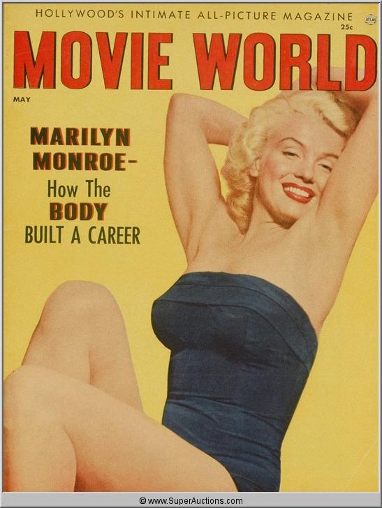 Color Transparency Slide of Marilyn Monroe who was featured as the Cover Girl on the cover of Movie World Magazine. It is a transparency from a picture taken of the actual publication.