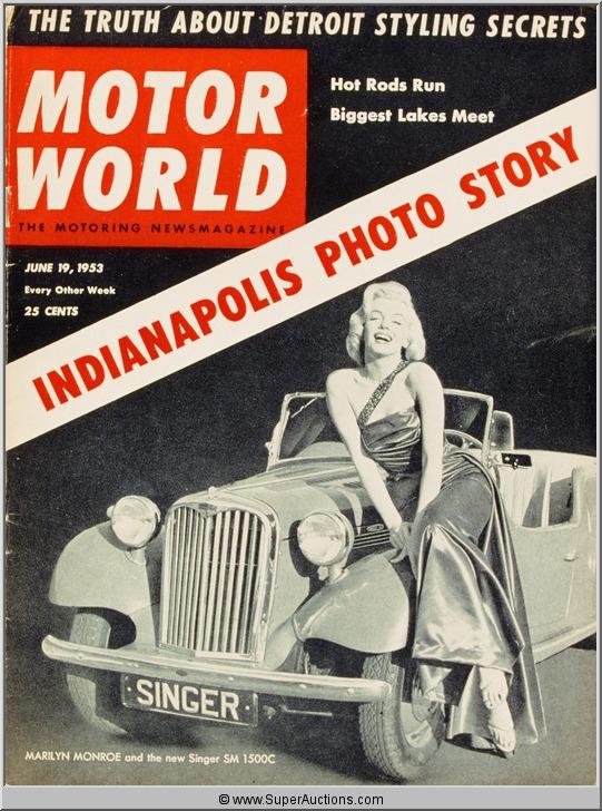 Color Transparency Slide of Marilyn Monroe who was featured as the Cover Girl on the cover of the June 19, 1953 Motor World Magazine. It is a transparency from a picture taken of the actual publication.