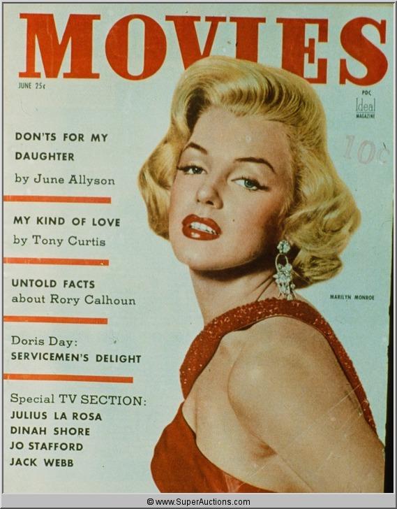 Color Transparency Slide of Marilyn Monroe who was featured as the Cover Girl on the cover of Movies Magazine. It is a transparency from a picture taken of the actual publication.