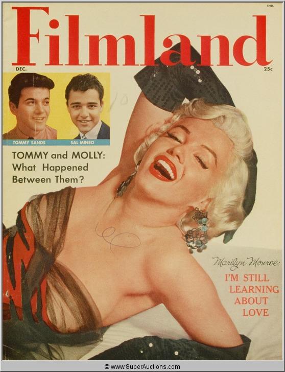 Color Transparency Slide of Marilyn Monroe who was featured as the Cover Girl on the cover of FilmLand Magazine. It is a transparency from a picture taken of the actual publication.