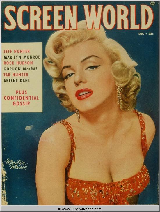 Color Transparency Slide of Marilyn Monroe who was featured as the Cover Girl on the cover of Screen World Magazine. It is a transparency from a picture taken of the actual publication.