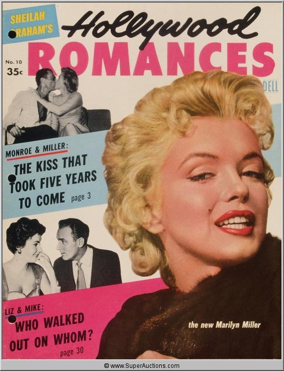 Color Transparency Slide of Marilyn Monroe who was featured as the Cover Girl on the cover of Hollywood Romances Magazine. It is a transparency from a picture taken of the actual publication.