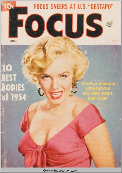 Color Transparency Slide of Marilyn Monroe who was featured as the Cover Girl on the cover of Focus Magazine. It is a transparency from a picture taken of the actual publication.