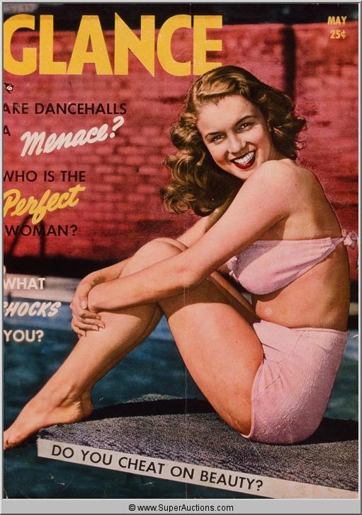 Color Transparency Slide of Marilyn Monroe who was featured as the Cover Girl on the cover of Glance Magazine. It is a transparency from a picture taken of the actual publication.