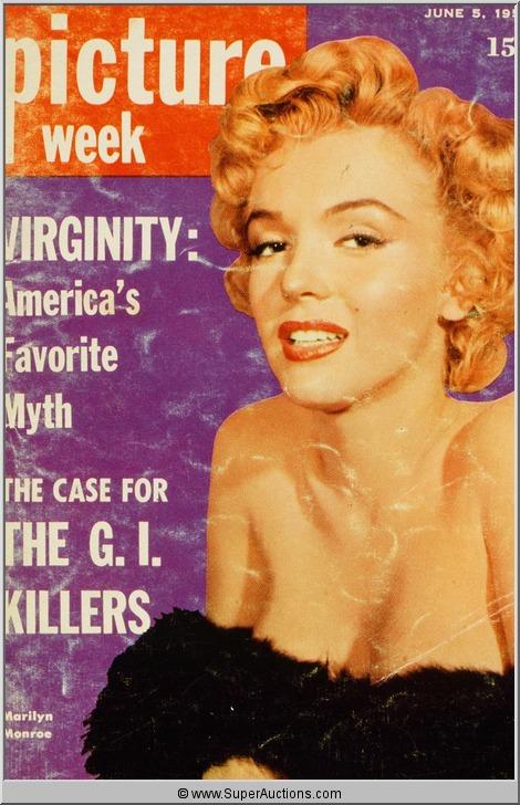 Color Transparency Slide of Marilyn Monroe who was featured as the Cover Girl on the cover of Picture Week Magazine. It is a transparency from a picture taken of the actual publication.