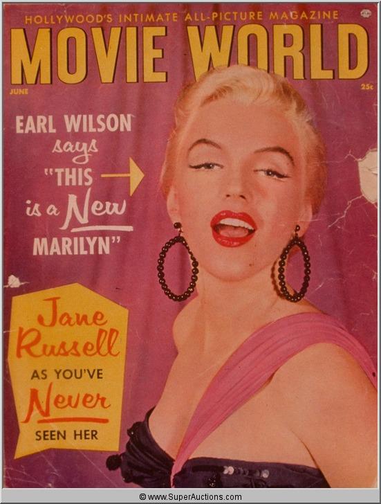 Color Transparency Slide of Marilyn Monroe who was featured as the Cover Girl on the cover of Movie World Magazine. It is a transparency from a picture taken of the actual publication.