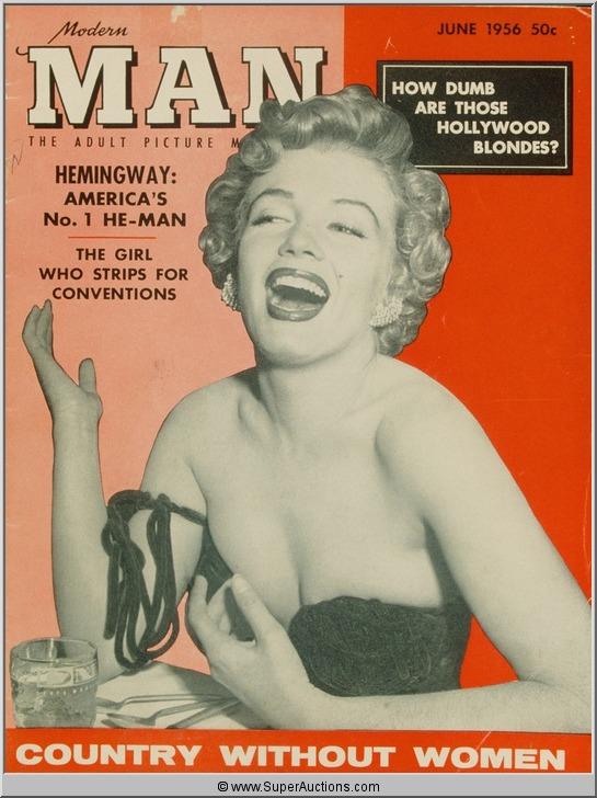 Color Transparency Slide of Marilyn Monroe who was featured as the Cover Girl on the cover of the June 1956 Issue of Modern Man Magazine. It is a transparency from a picture taken of the actual publication.