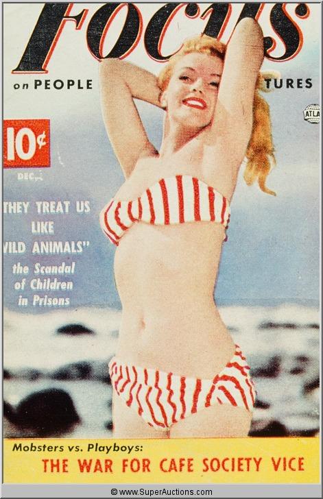 Color Transparency Slide of Marilyn Monroe who was featured as the Cover Girl on the cover of Focus Magazine. It is a transparency from a picture taken of the actual publication.