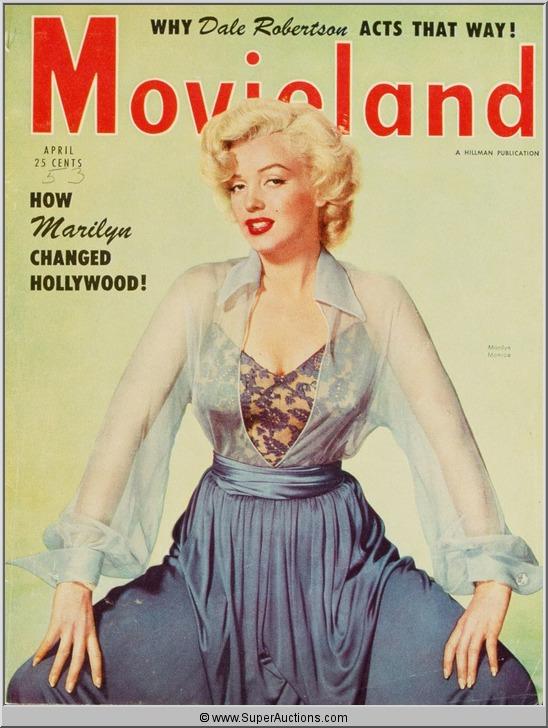 Color Transparency Slide of Marilyn Monroe who was featured as the Cover Girl on the cover of MovieLand Magazine. It is a transparency from a picture taken of the actual publication.