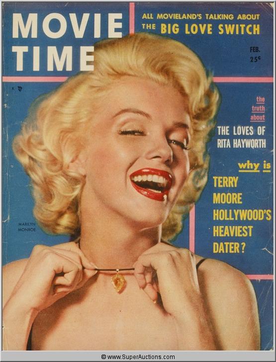 Color Transparency Slide of Marilyn Monroe who was featured as the Cover Girl on the cover of Movie Time Magazine. It is a transparency from a picture taken of the actual publication.