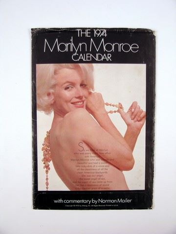 This is one of the original Marilyn Monroe "Famous Photographer" 1974 Calendars with the original sleeve. The calendar inside features a cornucopia of iconic Monroe photos including Tom Kelley's "A New Wrinkle" nude, plus famous Monroe images from Bert Stern, Andre De Dienes, Philippe Halsman, George Barris, Douglas Kirkland, Lawrence Shiller, and Eve Arnold. It also includes commentary on each page from Norman Mailer. Cover shows some signs of age, however the inside calendar is in mint condition. Approx 8"x12.5".