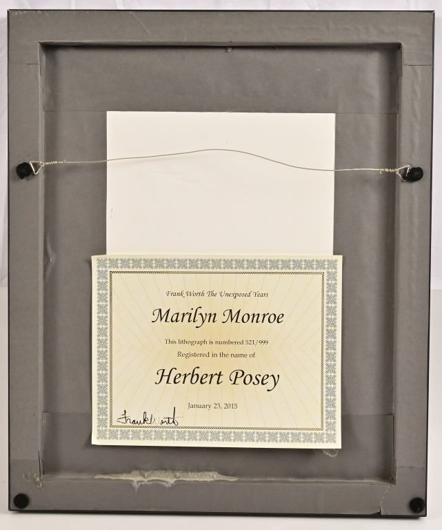 Frank Worth: The exposed Years; Limited Edition lithograph photo print numbered 521/999. Includes COA. Framed18.5" x 22"