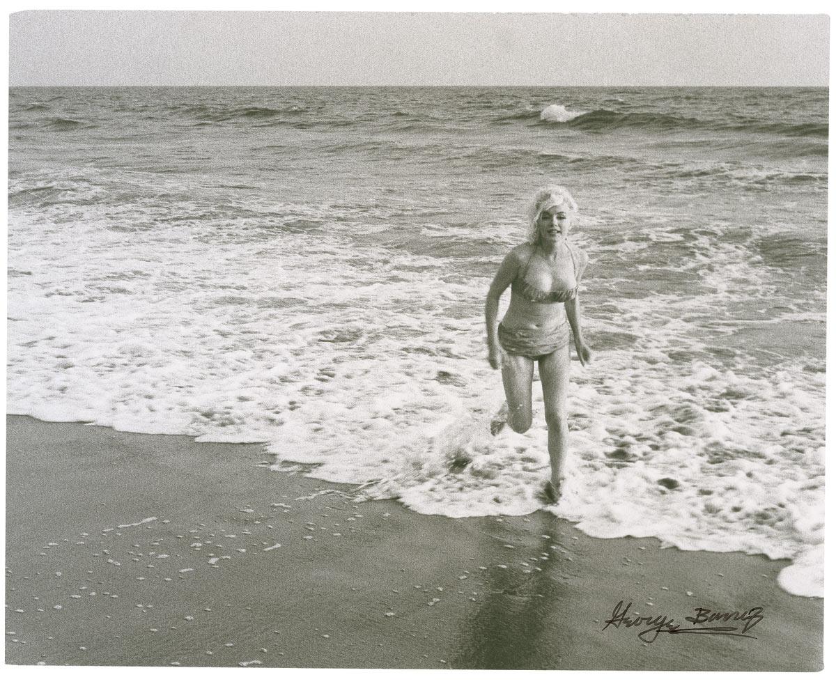 Freelance photographer who photographed many of Hollywood’s stars during the 1950s and 60s. He is perhaps best known for his work with Marilyn Monroe, however, with whom he was collaborating on a book at the time of her death. Attractive 10 x 8 silver gelatin print of Marilyn frolicking along the surf in Santa Monica in 1962, signed in black felt tip by Barris. This photo was printed between 1962 and 1980 when Barris lived in France, with the verso showing his French copyright stamp. In fine condition.