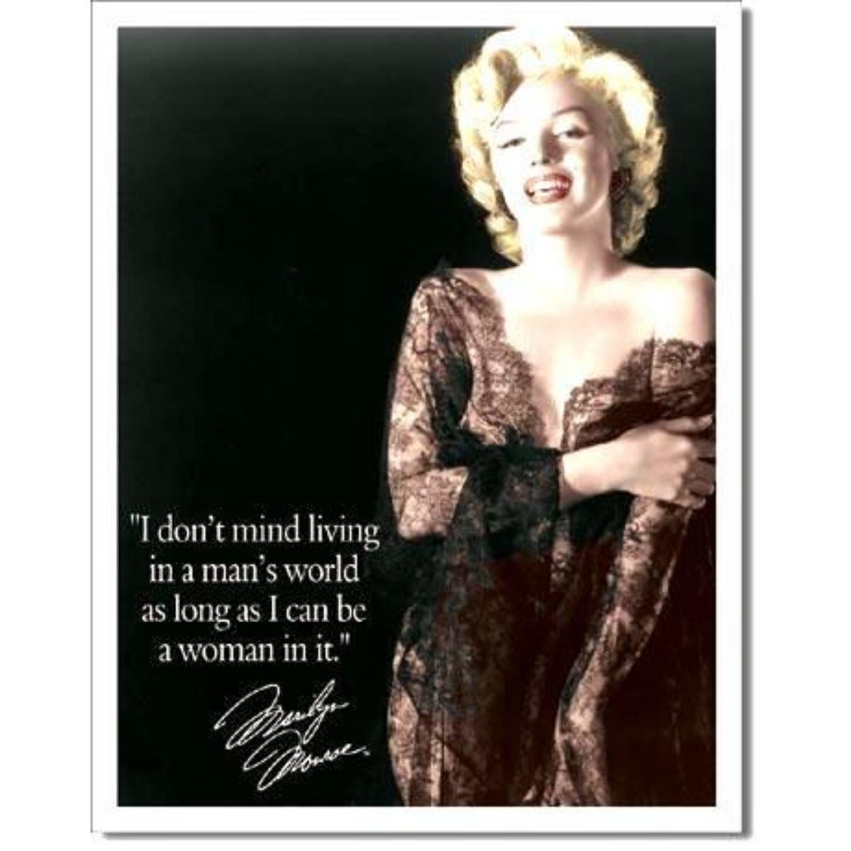 Marilyn Monroe metal pub bar sign. "I don't mind living in a man's world as long as I can be a woman in it." 12 1/2" X 16" with pre-drilled holes for mounting.