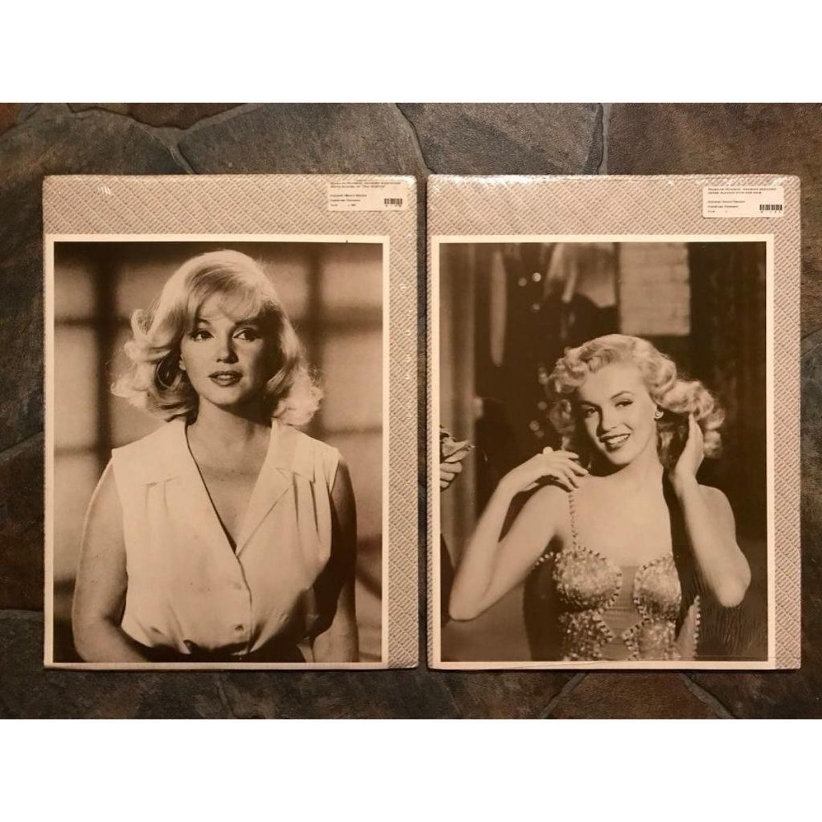Pair of Marilyn Monroe, movie star, sepia-tone photo prints, on heavy cardstock, printed in the early 1990's for The American Heritage Gallery. In original shrink-wrapped packaging. 11" x 14" each.